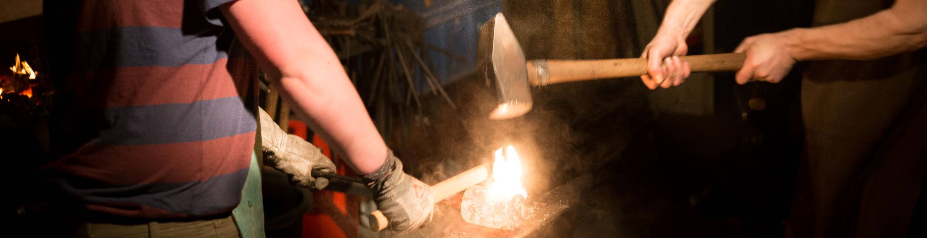 In onze smederij bieden we boeiende en hands-on workshops aan, waarin de eeuwenoude kunst van het smeden tot leven komt. Of je nu een enthousiaste beginner bent of al wat ervaring hebt met het smeden; onze workshops zijn ontworpen om aan te sluiten bij diverse vaardigheidsniveaus en de docent gaat in je ontwerp mee. Tijdens onze sessies krijg je de kans om ambachtelijke meesterwerken te creëren, zoals smeedhamers, smeedtangen, bijlen, messen, hang en sluitwerk, kandelaars... verzin het maar. Onze gepersonaliseerde aanpak stelt je in staat om je creativiteit de vrije loop te laten en zelfs je eigen unieke ontwerpen te realiseren. Of je nu komt om nieuwe vaardigheden te leren of gewoon om een onvergetelijke ervaring te beleven, onze smeedworkshops beloven een boeiend avontuur in de wereld van het smeden.